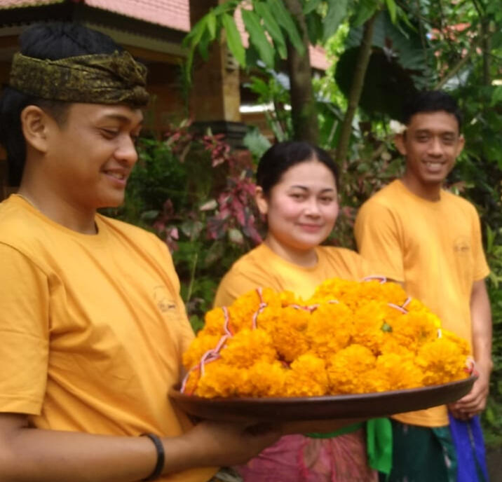 Enjoy a traditional Balinese Gamelan performance by five young women, set at the temple adjacent to the Kayu Putih tree. This enchanting music connects visitors with local legend and the spiritual heartbeat of the island.Environmental and Community Activity